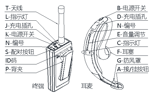 用戶佩戴藍牙耳麥,與終端通過藍牙無線傳輸話音;多個終端之間通過專有無線建立一個遠距離通信網絡,從而使多個遠距離的用戶可像面對面一樣的通話。
