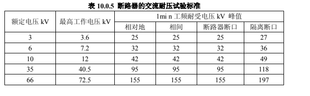 斷路器的交流耐壓試驗應在分、合閘狀態(tài)下分別進行,試驗電壓按照表 10.0.5 規(guī)定執(zhí)行。