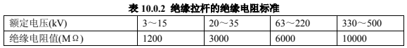 2.絕緣拉桿的絕緣電阻值,在常溫下不應(yīng)低于表 10.0.2 的規(guī)定。