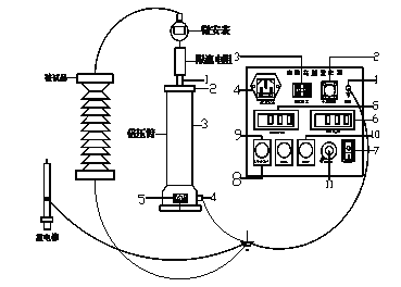 10.升壓至所需電壓或電流。升壓速度以每秒3—5kV試驗(yàn)電壓為宜。對(duì)于大電容試品升壓時(shí)還需監(jiān)視電流表充電電流不超過試驗(yàn)器的最大充電電流。對(duì)小電容試品如氧化鋅避雷器、磁吹避雷器等先升至所需電壓(電流)的95%,再緩慢仔細(xì)升至所需的電壓(電流)。然后從數(shù)顯表上讀出電壓(電流)值。如需對(duì)氧化鋅避雷器進(jìn)行0.75UDC—1mA測量時(shí),先升至UDC1mA電壓值,然后按下黃色按鈕,此時(shí)電壓即降至原來的75%,并保持此狀態(tài)。此時(shí)可讀取電流。測量完畢后,調(diào)壓電位器逆時(shí)針回到零,按下綠色按鈕。需再次升壓時(shí)按紅色按鈕即可。