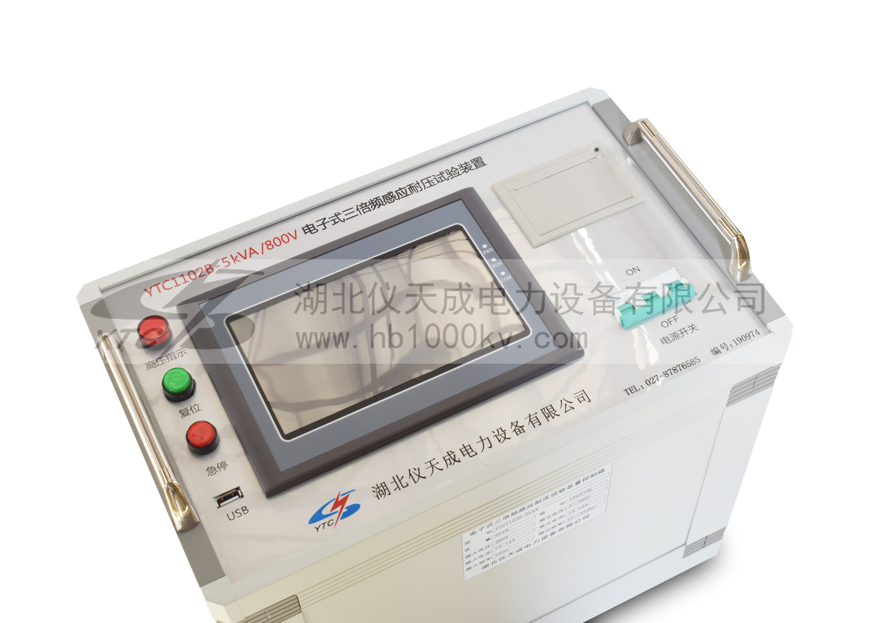 4、該裝置采用電力電子技術,內部核心部分使用變頻調節器。參數預置、保護設置、頻率選擇、電壓調節控制等,全部采用數字控制技術。內置計算機,7寸彩色液晶顯示,數據存儲可達到200組。