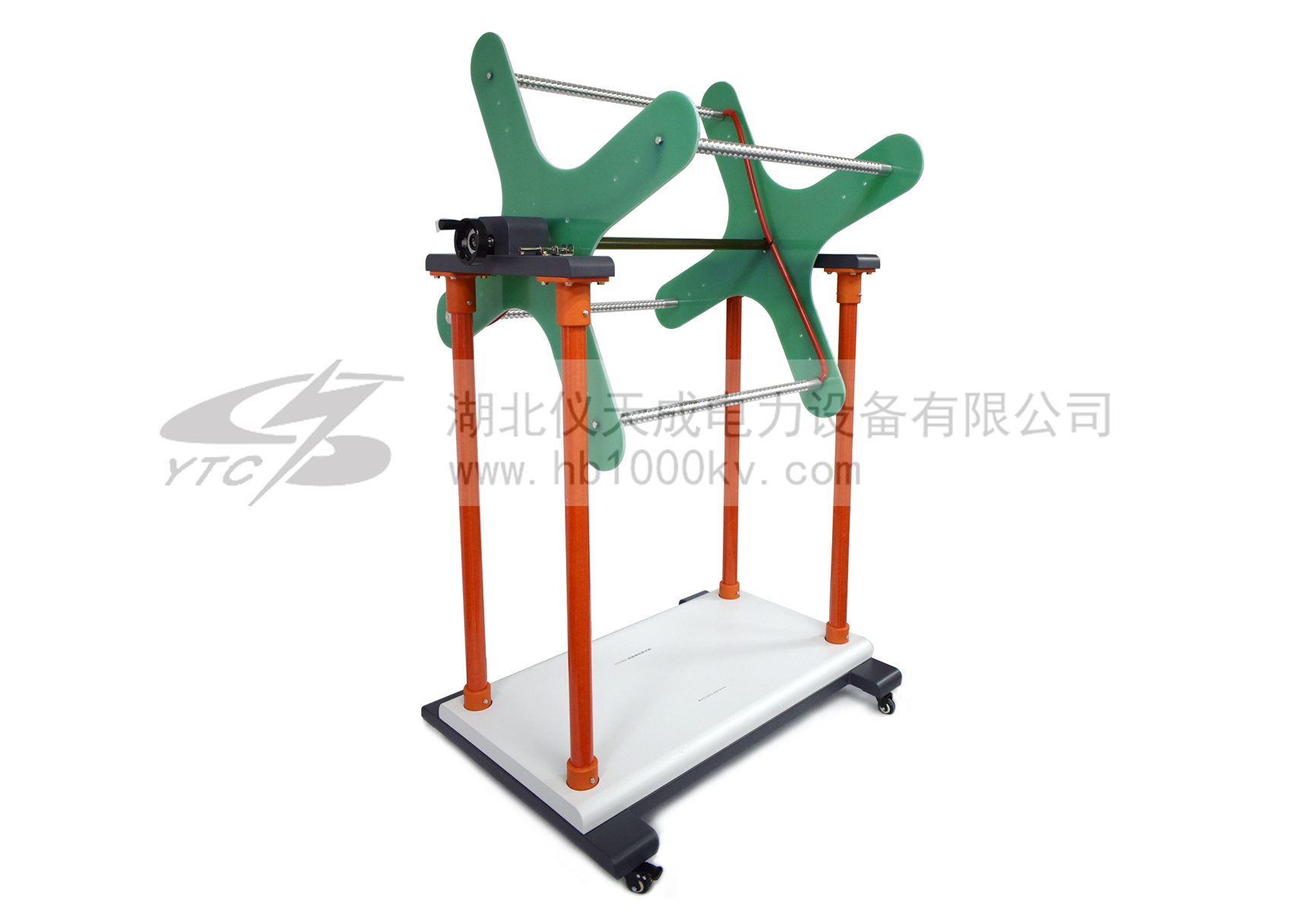 本公司生產的絕緣繩耐壓試驗支架是依據中華人民共和國國家發展改革委員會發布的中華人民共和國電力行業標準DL/T976-2015《帶電作業工具、裝置和設備預防性試驗規程》的要求基礎上研制而成,產品各項指標均符合國標要求。對大地采用高耐壓絕緣桿作為支撐。試驗電級板采用高強耐高壓復合絕緣板材,此板材具有防潮、防火、高耐壓重復性好等特性。